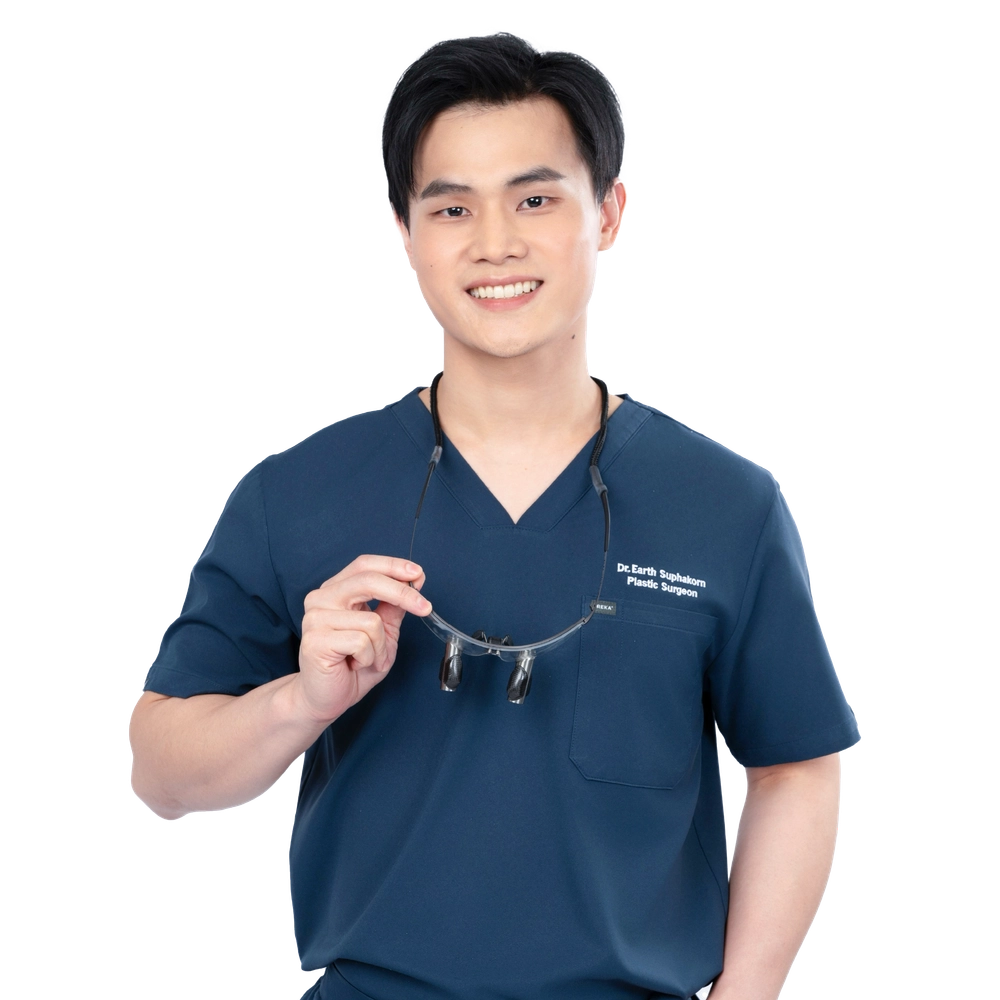 Dr. Suphakorn Tangchirakhaphan, MD. (Medical License No. 48272), known as Dr.Earth, graduated from the Faculty of Medicine at Chulalongkorn University. He later pursued a master’s degree in dermatology at Srinakharinwirot University to become a certified dermatologist, followed by specialized training in Plastic and Reconstructive Surgery at Rajavithi Hospital.