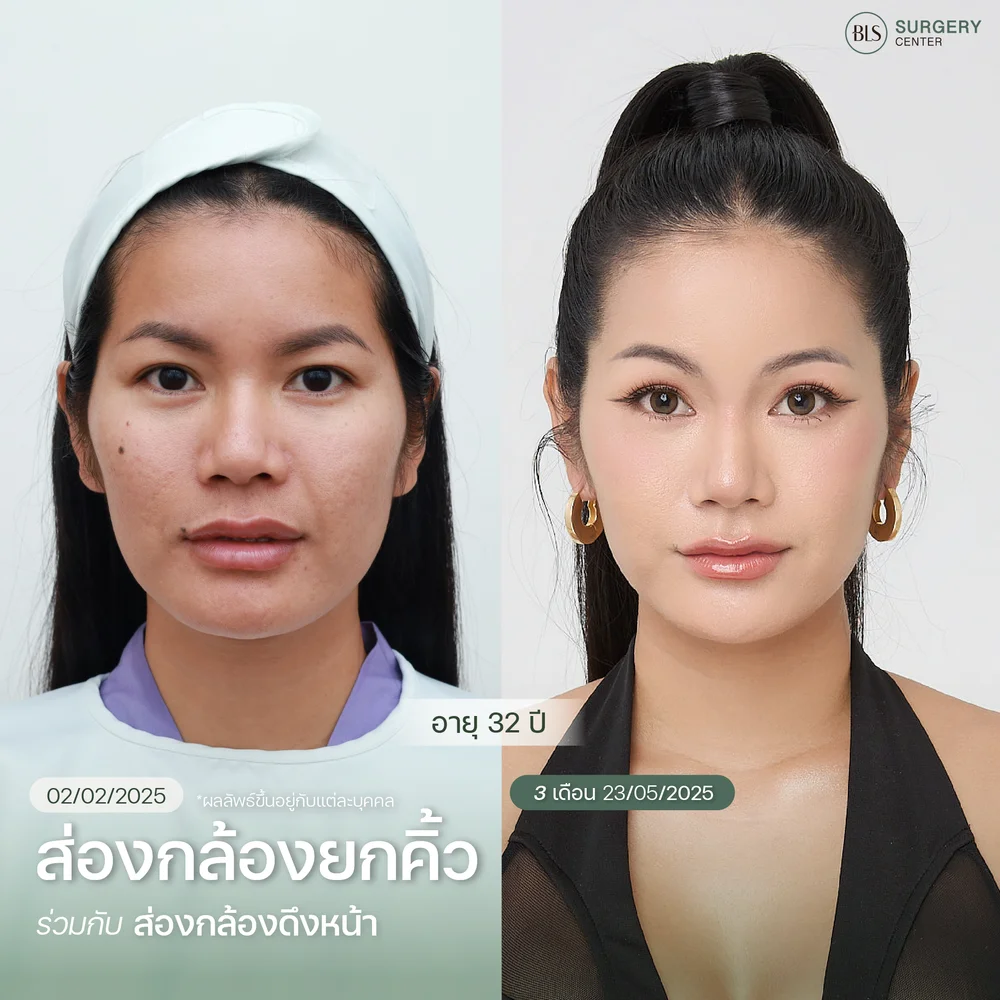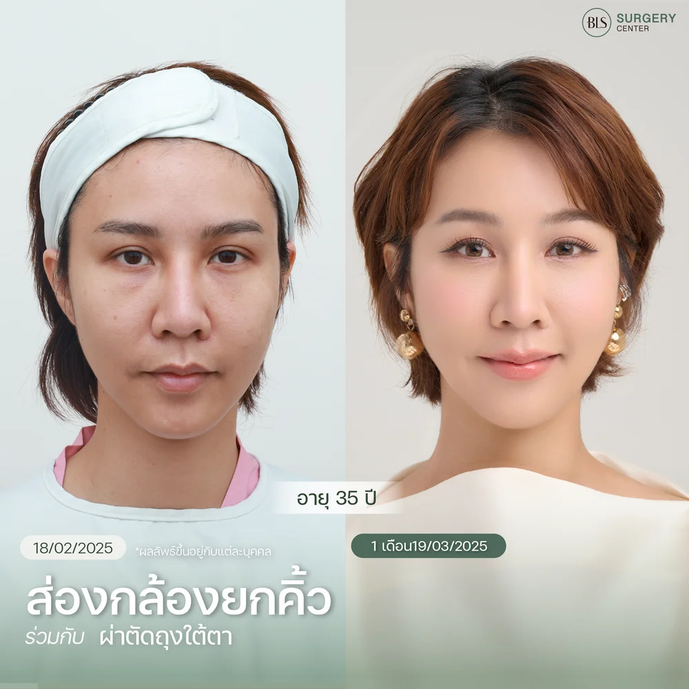 หนังตาและหางตาดูยกขึ้น พื้นที่ตากับคิ้วเพิ่มขึ้น ดวงตาและใบหน้าสดใสขึ้น หน้าดูเรียวขึ้น เปลี่ยนแต่ยังคงเป็นตัวเอง และดูเปป็นธรรมชาติ คนไข้รู้สึกมั่นใจมากขึ้น